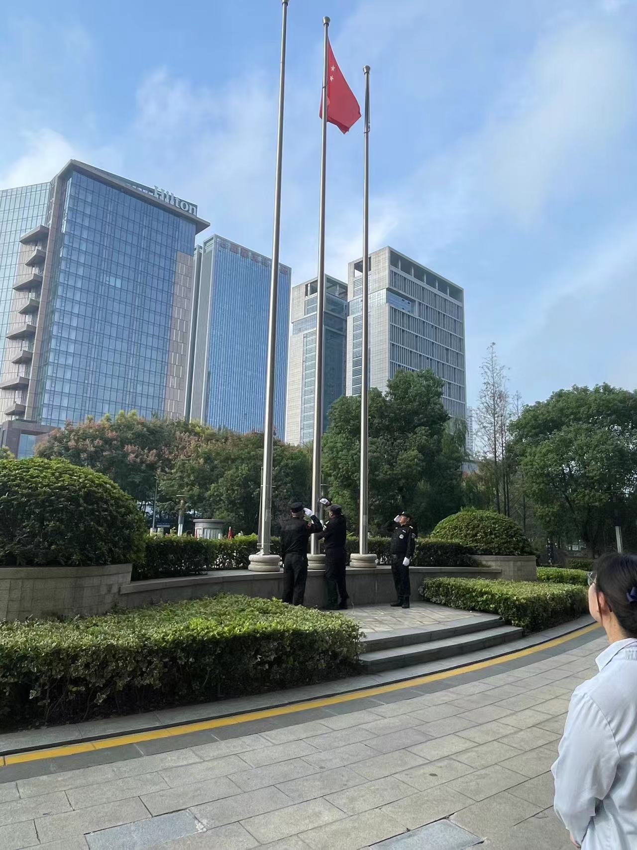 ÉÏÎç8ʱ£¬È«Ìåµ³Ô±ÕûÆëÅŶÓ£¬×¯ÖØËàÁ¢¡£ÏʺìµÄÎåÐǺìÆìÔÚÐÛ׳µÄ¹ú¸èÉùÖÐÐìÐìÉýÆð£¬È«ÌåÖ°Ô±Ïò¹úÆìÐÐעĿÀñ£¬ÆëÉù¸ß³ª¹ú¸è£¬Îª×æ¹úËÍÉÏ×îÕæÖ¿µÄ×£¸£¡£